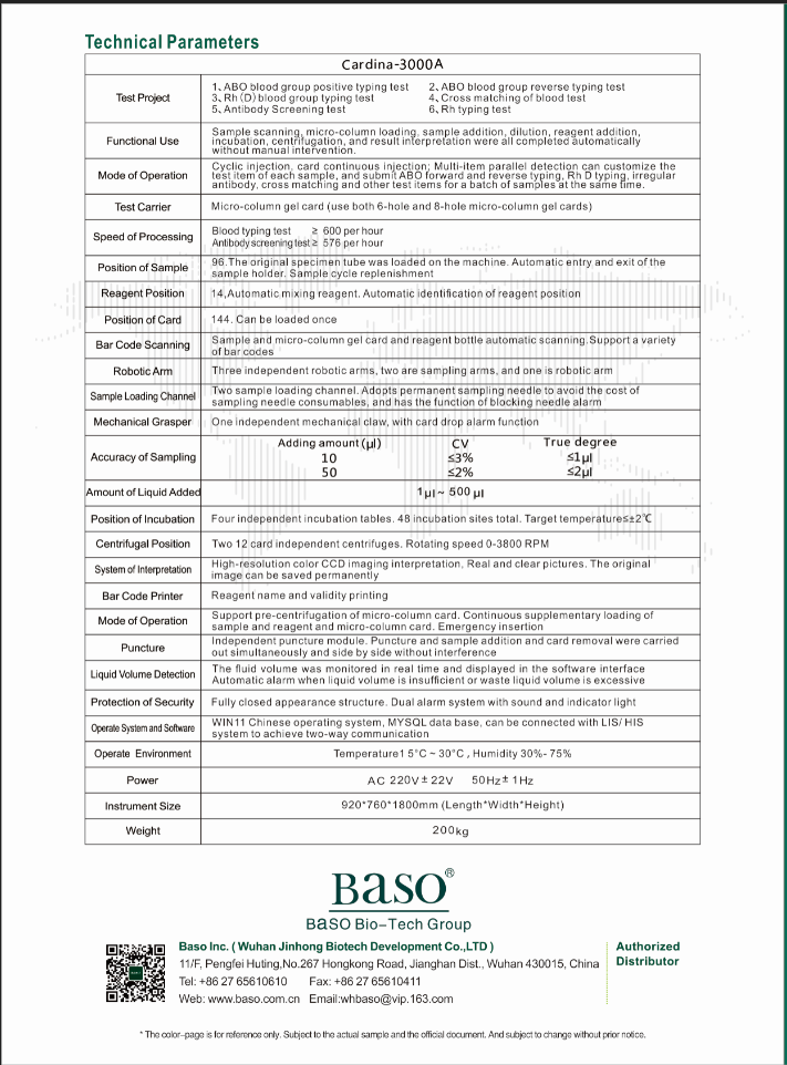 BaSO Automatic Blood Group Analyzer(Column-Agglutination Method)