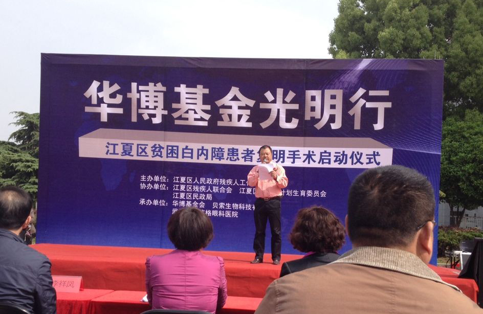 2014年4月14日,我公司派代表參加在武漢市江夏區(qū)舉行的“華博基金光明行”江夏區(qū)貧困白內(nèi)障患者復(fù)明手術(shù)啟動(dòng)儀式。