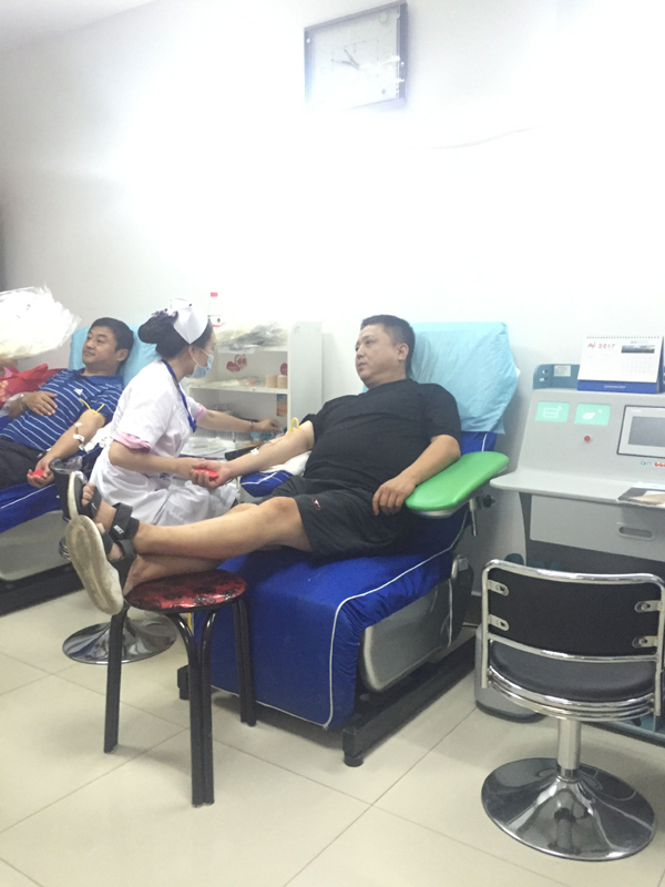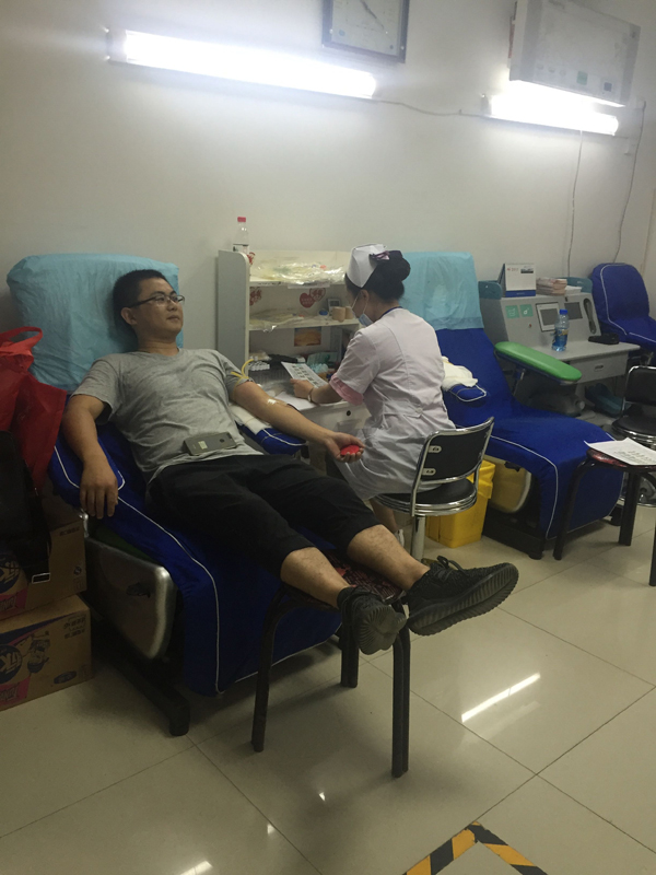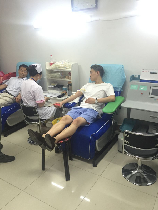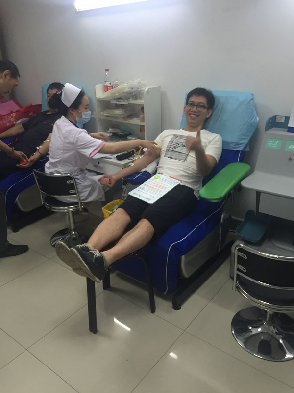 活動(dòng)進(jìn)行的兩個(gè)小時(shí),最終有16名員工通過(guò)體檢,光榮獻(xiàn)血,其中8人捐獻(xiàn)血液400毫升,6人捐獻(xiàn)血液300毫升,2人捐獻(xiàn)血液200毫升,捐獻(xiàn)血液共計(jì)27個(gè)單位,5400毫升。特別值得表?yè)P(yáng)的是,來(lái)自財(cái)務(wù)部的李婭是16位中唯一的女性,盡管身材嬌小,而且是第一次參加獻(xiàn)血,表現(xiàn)得特別勇敢,主動(dòng)要求獻(xiàn)血300ml。來(lái)自工程部的李成林和銷售部的文斌作為無(wú)償獻(xiàn)血的常客,都是5次奉獻(xiàn)了愛(ài)心。