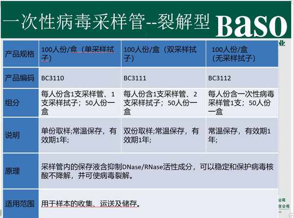 | BC3111 | 一次性病毒采樣管(裂解型) | 100人份(雙采樣拭子) | 盒 | 12月 | |
