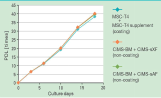 【產(chǎn)品概述】 CiMS系列培養(yǎng)液是專為人類間充質(zhì)干細(xì)胞體外無分化增殖培養(yǎng)而研發(fā)的高端產(chǎn)品,包括CiMS-BM基礎(chǔ)培養(yǎng)液和CiMS-sXF培養(yǎng)液添加劑。二者不添加牛血清等存在潛在污染風(fēng)險的物質(zhì),不含異質(zhì)源性物質(zhì),使用醫(yī)療級蛋白使得使用更安全。另外,培養(yǎng)容器無需黏連蛋白包被,亦可使干細(xì)胞貼壁并迅速增殖。無需添加額外的血清及細(xì)胞因子,減少了外源因素導(dǎo)致的不穩(wěn)定性,保證臨床中至少5代以內(nèi)保持間充質(zhì)干細(xì)胞的特性不分化。并且,經(jīng)實(shí)驗(yàn)證明擴(kuò)增的間充質(zhì)干細(xì)胞有向骨、脂肪及軟骨分化的能力。