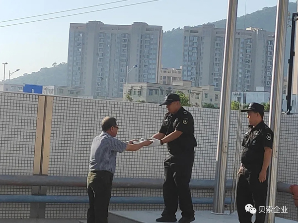 2020年11月7日8時20分,貝索生物全體員工在位于珠海市南屏國家級高新科技園的貝索工業(yè)園舉行了入園升旗儀式,鮮艷的五星紅旗在雄壯的國歌聲中冉冉升起,隨后,分別代表著貝索企業(yè)和珠海貝索生物的旗幟也升上旗桿伴隨著國旗迎風飄揚,標志著貝索人翹首以盼的貝索工業(yè)園開始啟用;