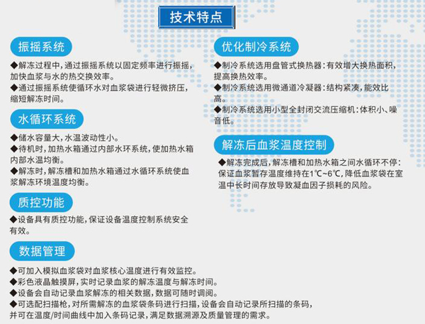 ●用于對(duì)臨床血漿進(jìn)行解凍。適用于冰凍血漿制作冷沉淀凝血因子時(shí)解凍(離心法),通過(guò)恒溫水浴對(duì)新鮮冰凍血漿進(jìn)行解凍,對(duì)血漿解凍全過(guò)程的溫度變化進(jìn)行實(shí)時(shí)監(jiān)控并記錄,實(shí)現(xiàn)解凍過(guò)程數(shù)據(jù)溯源。